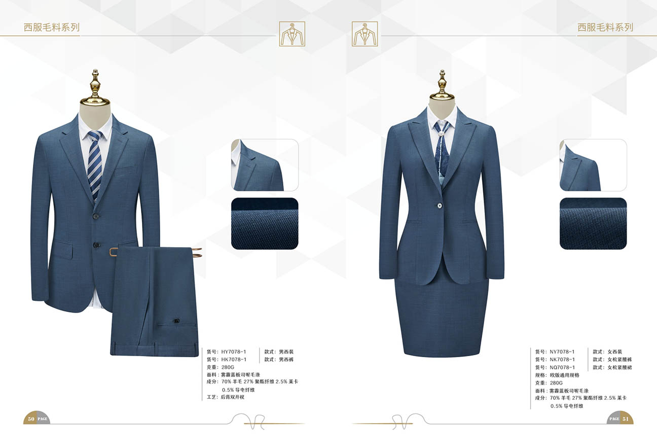 优点:能让西服保持良好的版型,外观挺括、线条流畅,穿着舒适且不易起皱,具有一定的耐磨性,是制作西服的优质材料,不同支数的羊毛可以适应不同季节和需求。