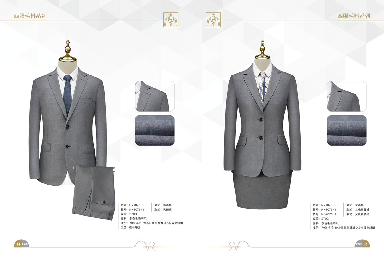 优点:能让西服保持良好的版型,外观挺括、线条流畅,穿着舒适且不易起皱,具有一定的耐磨性,是制作西服的优质材料,不同支数的羊毛可以适应不同季节和需求。
